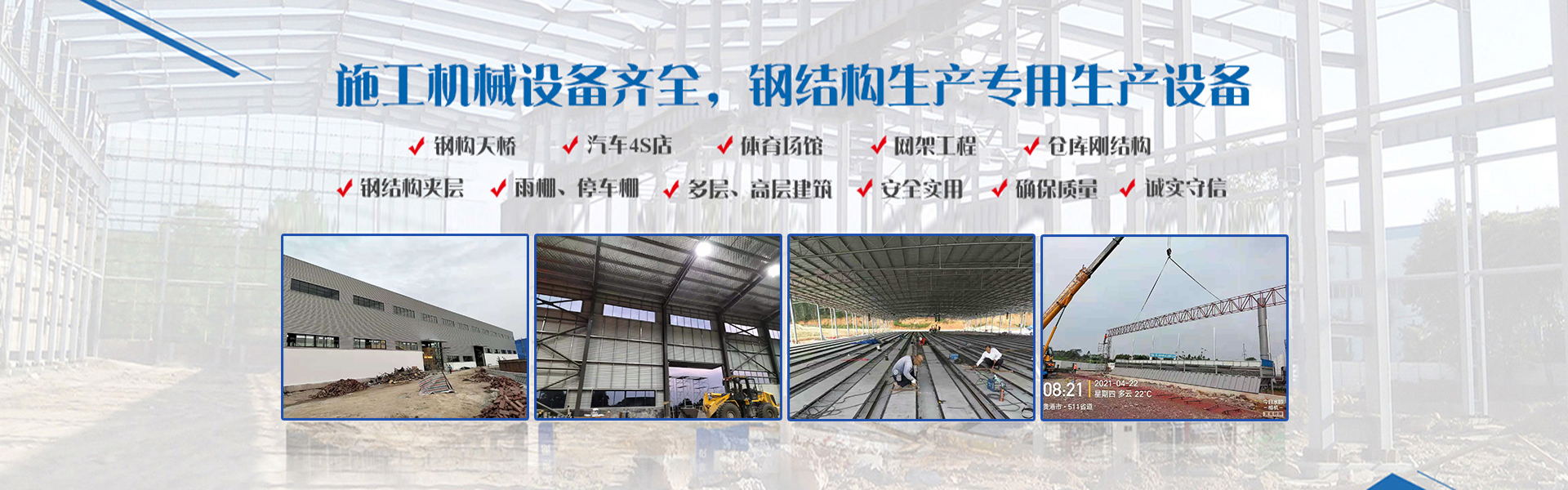 公司綜合實力雄厚,施工機械設備齊全,配置有多條焊接H型鋼生產線,箱型鋼生產線,以及C/Z型鋼生產線,樓承板、彩鋼板、夾芯板等專用生產設備,產品質量可靠。